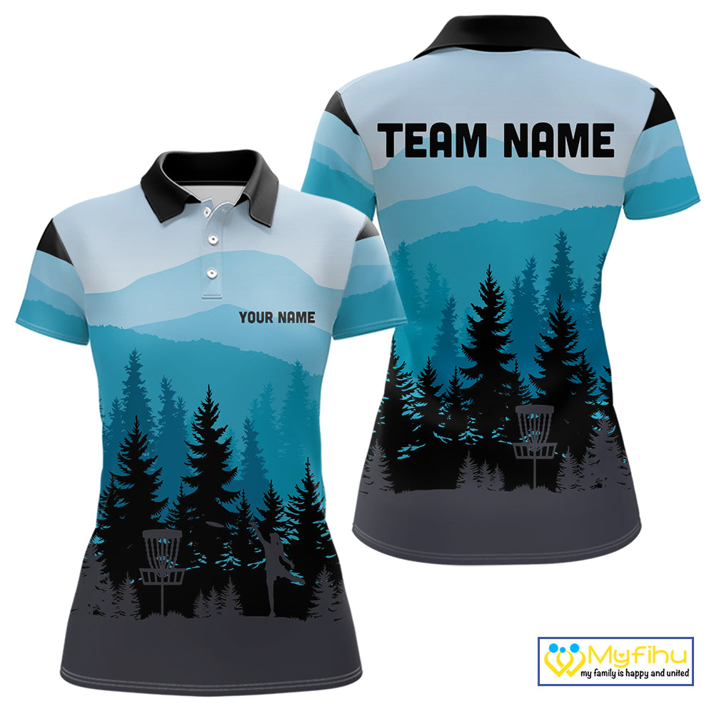 Blue pattern forest Women Disc golf polo shirts Custom team disc golf jerseys for ladies NQS9943
