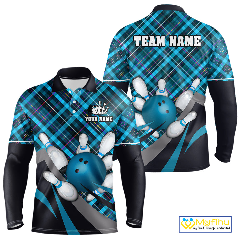 Blue Plaid pattern Bowling shirts For Men Custom Team Bowling Jersey Xmas Gift For Bowlers NQS10493