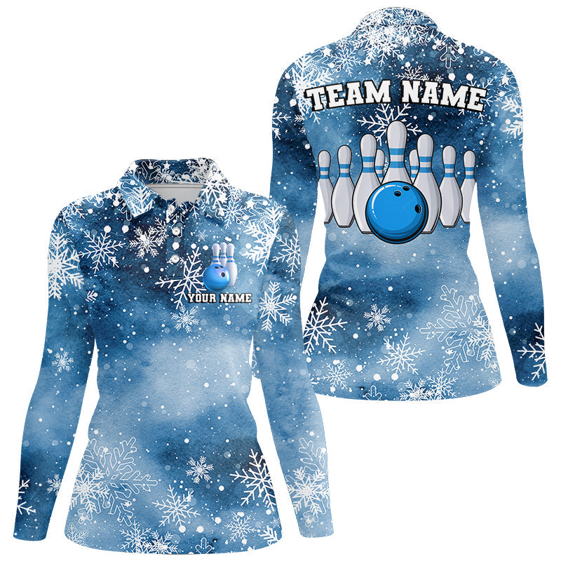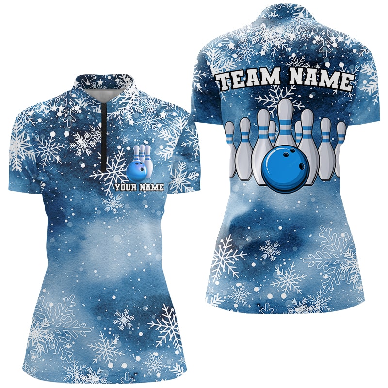 Blue Snowflake Christmas pattern Women's Bowling shirt Custom Christmas Team Bowling League Jersey NQS8854