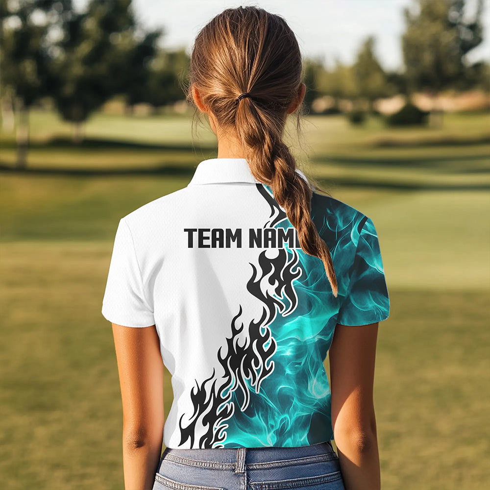 Blue Turquoise Flame pattern Black and White Womens golf polos shirts custom golf attire for women NQS9436