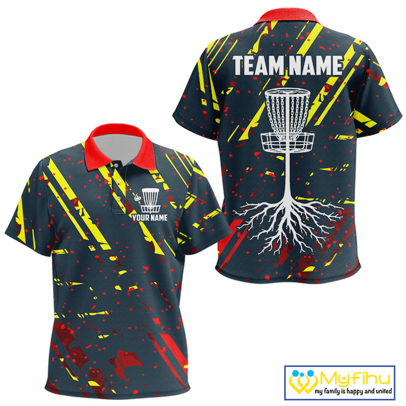 Blue, yellow and red background Kid Disc golf polo shirts Custom name disc golf clothing for team NQS10067