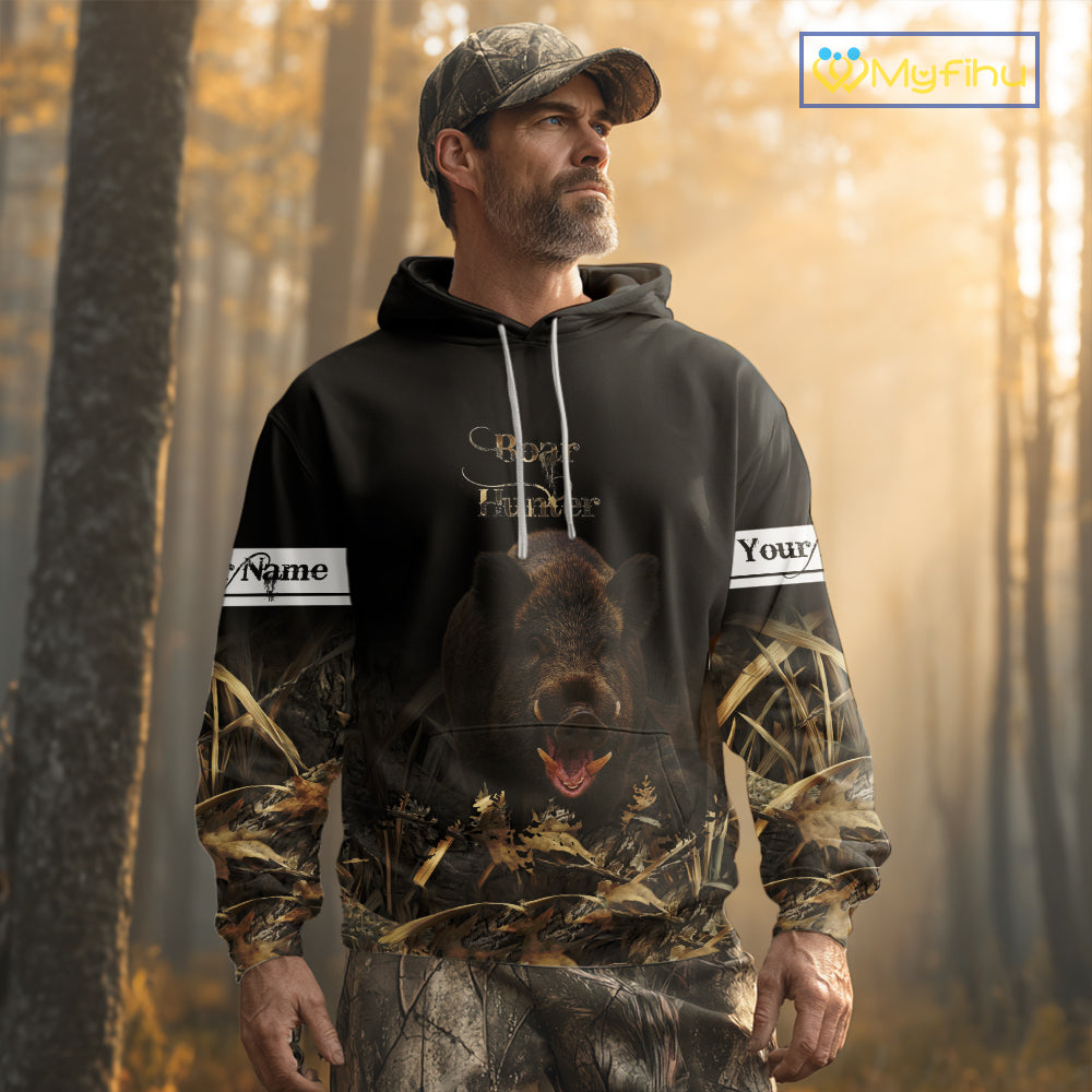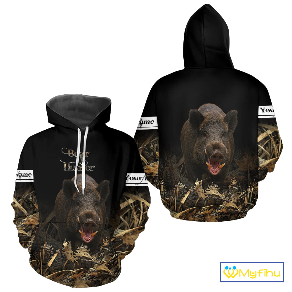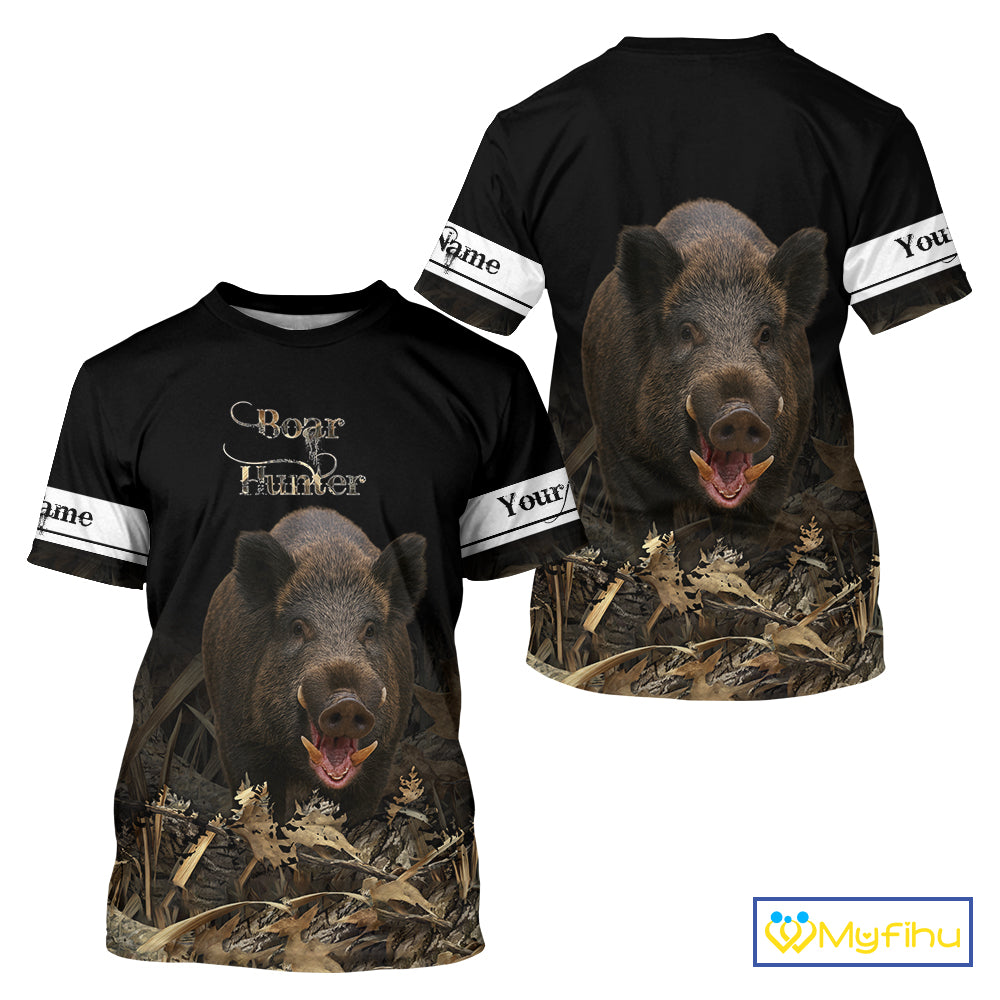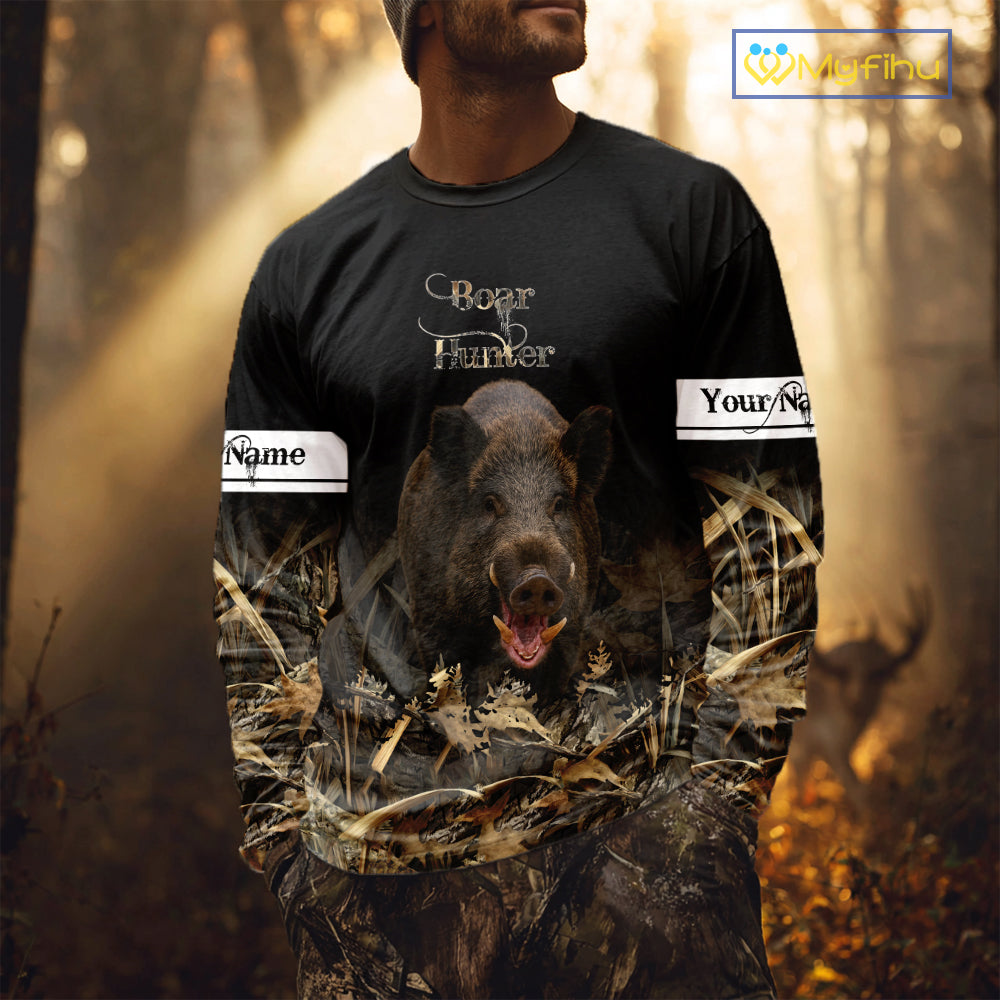 Boar Hunting Black Grown Camo 3D Shirt For Hunting Season Hunting Clothes For Hunters NHT113