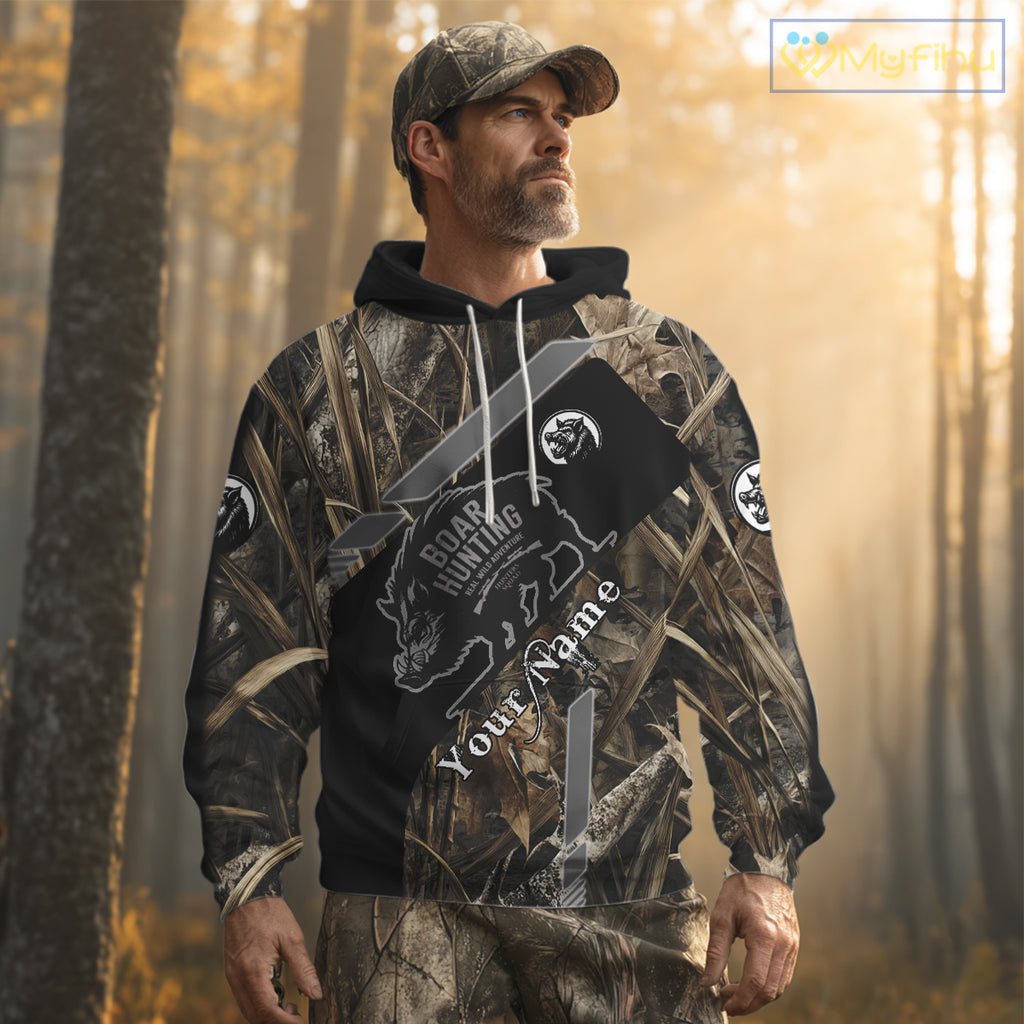 Boar Hunting Camouflage Custom Name Shirts, Personalized Boar Hunting Clothes, Hunting Gifts NBT175