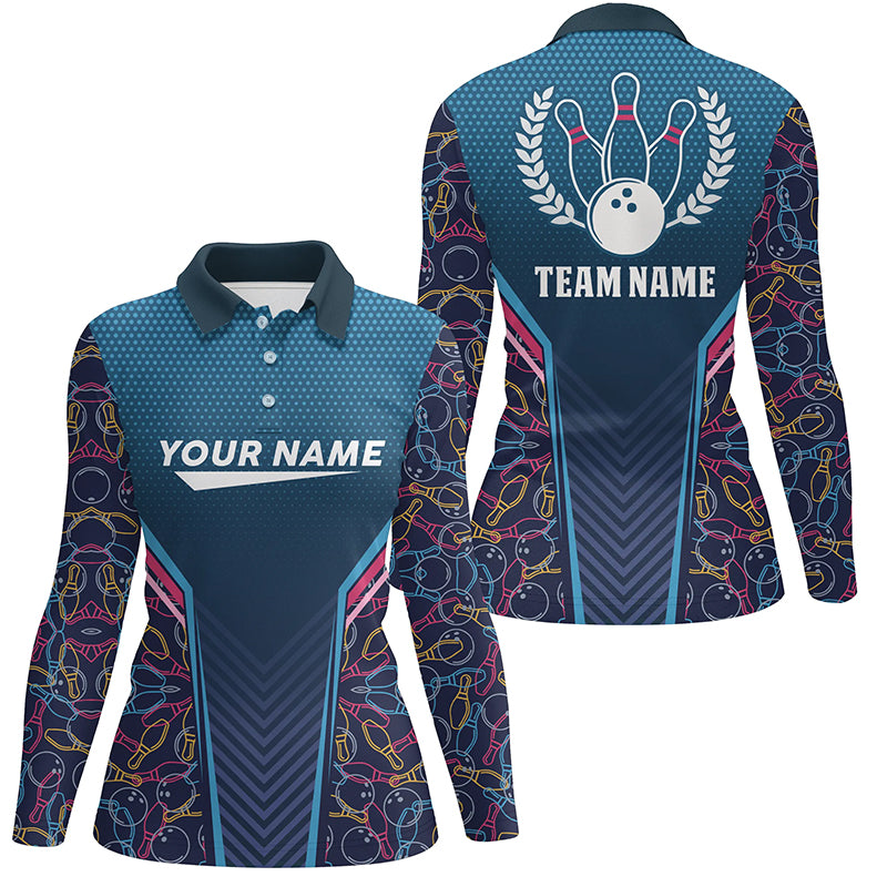 Bowling blue camo Womens bowling polo shirt Personalized Bowling Team League Jerseys Gift For Bowlers NQS6832
