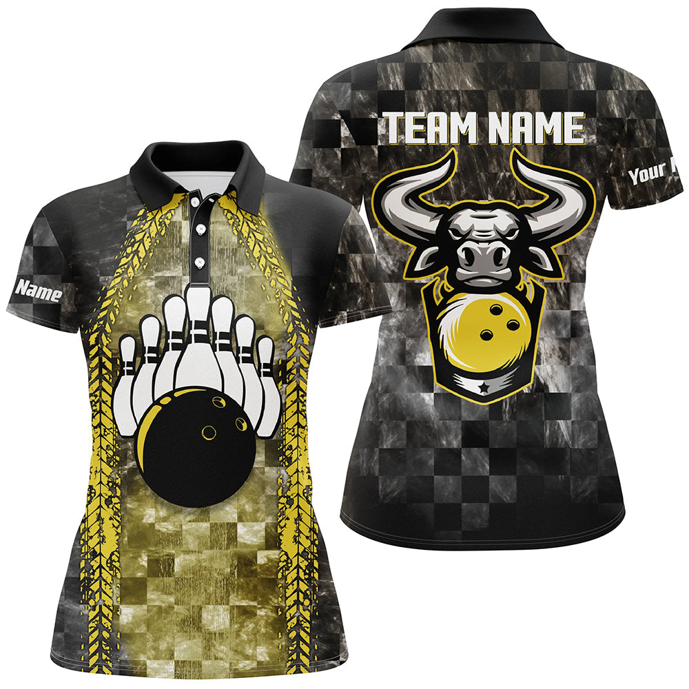 Bowling Bull Black And Yellow Women bowling polo shirts Custom bowling ball pins Team League Jersey NQS6499