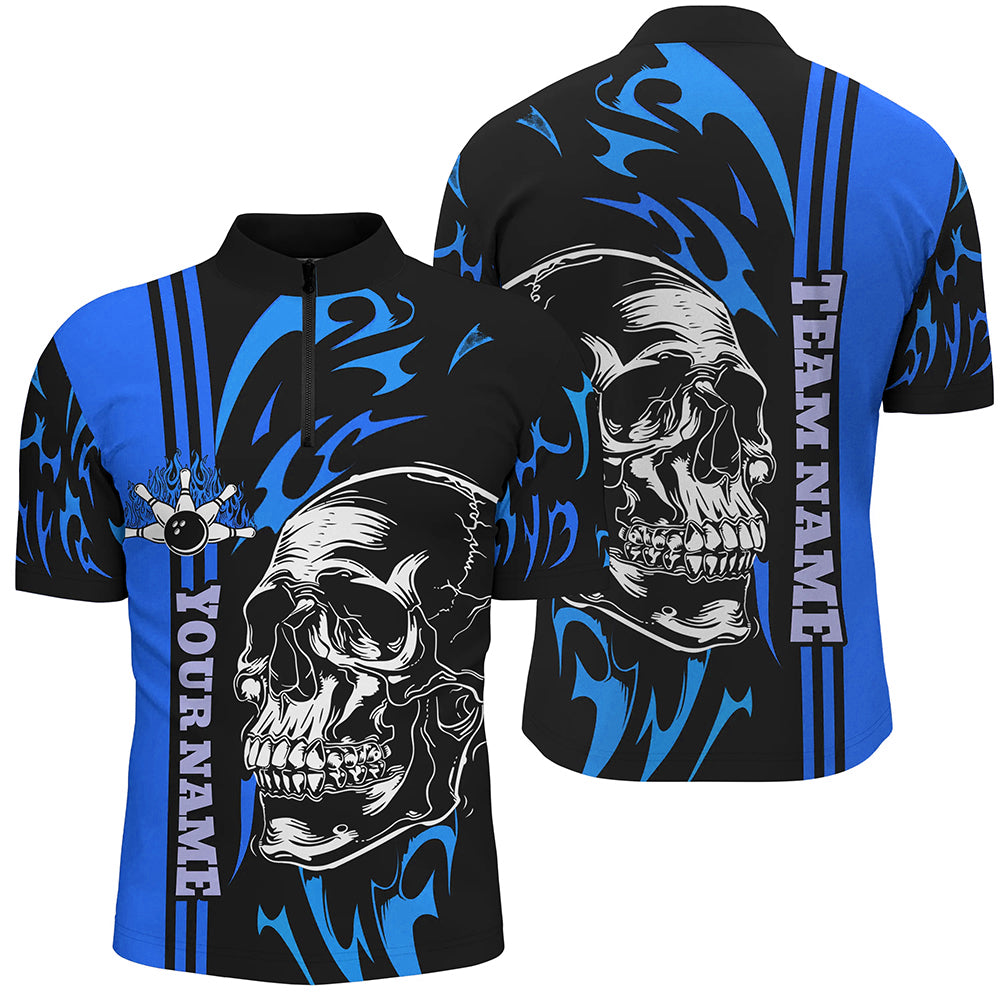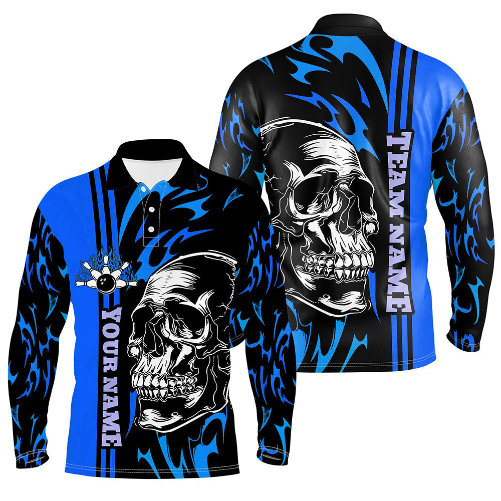 Bowling Shirts For Men Custom Black and Blue flame skull Bowling ball and pins Team league Jerseys NQS8667