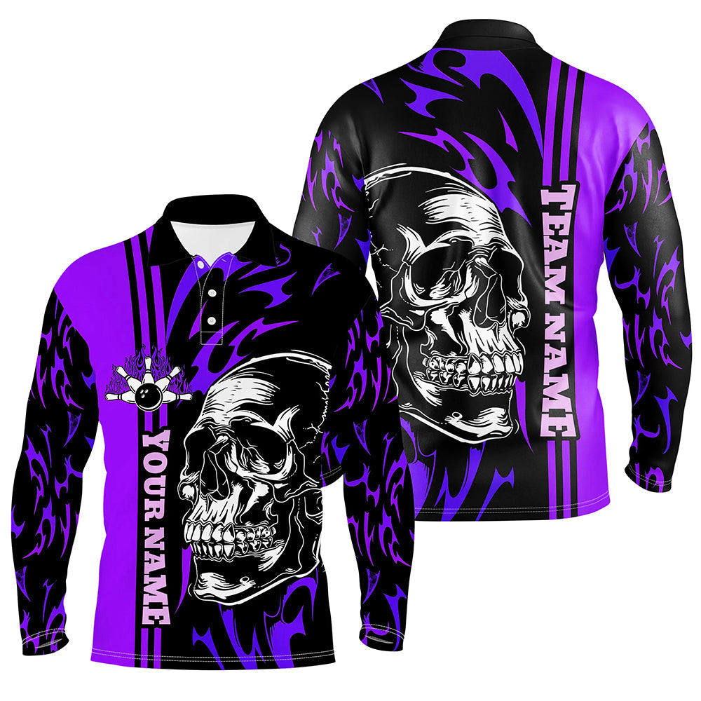 Bowling Shirts For Men Custom Black and Purple flame skull Bowling ball and pins Team league Jerseys NQS8665