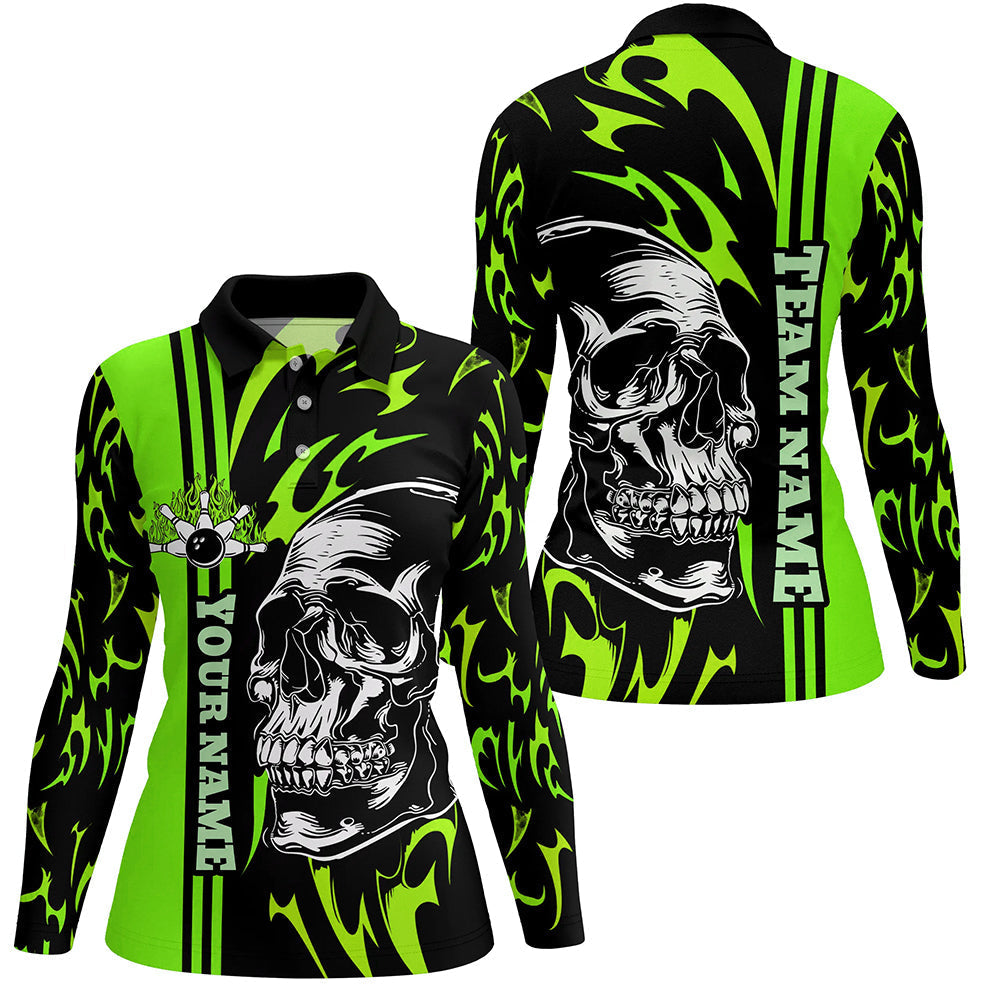 Bowling Shirts For Women Custom Black and Green flame skull Bowling ball and pins Team league Jerseys NQS8666