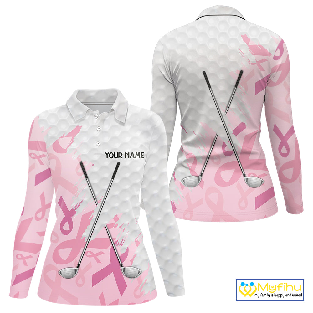 Breast cancer Women golf polo shirts custom Pink ribbon pattern golf clubs team golf tops for ladies NQS10423