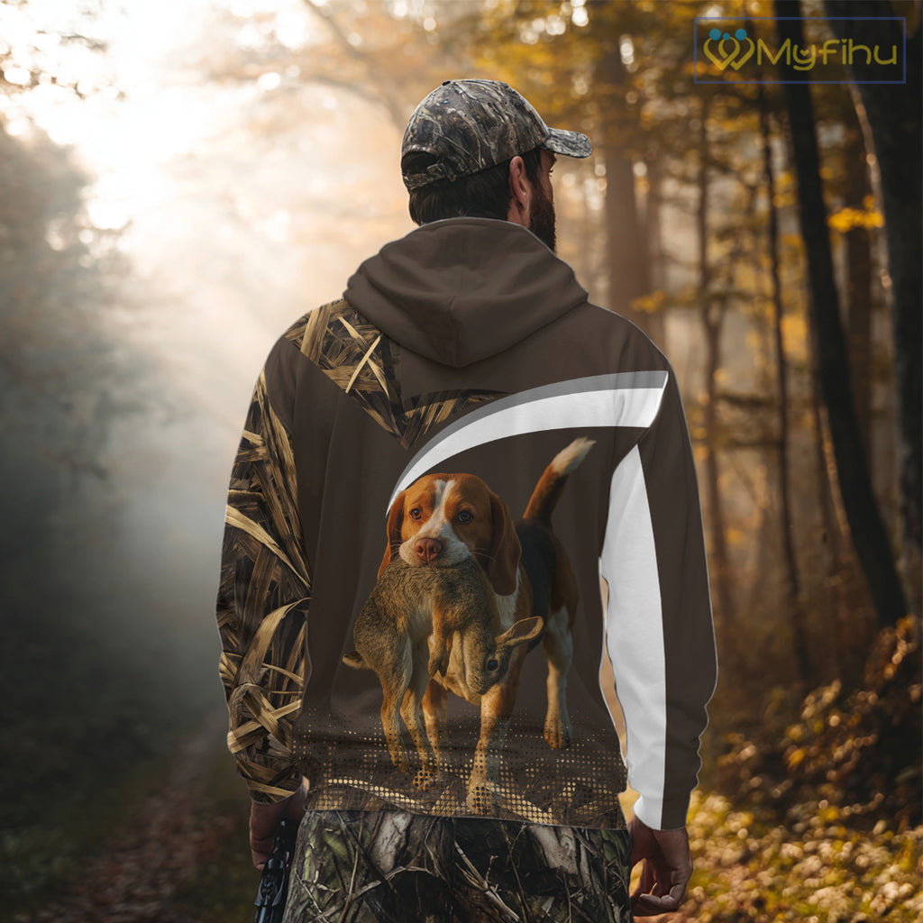 Brown Camo 3D Printed Beagle Dog Rabbit Hunting Shirt, Custom Name Hunting Gift NHT225