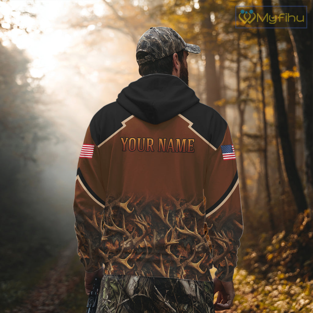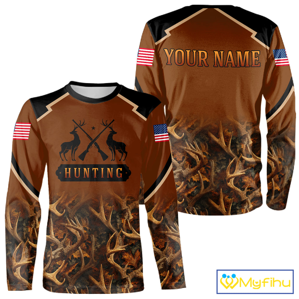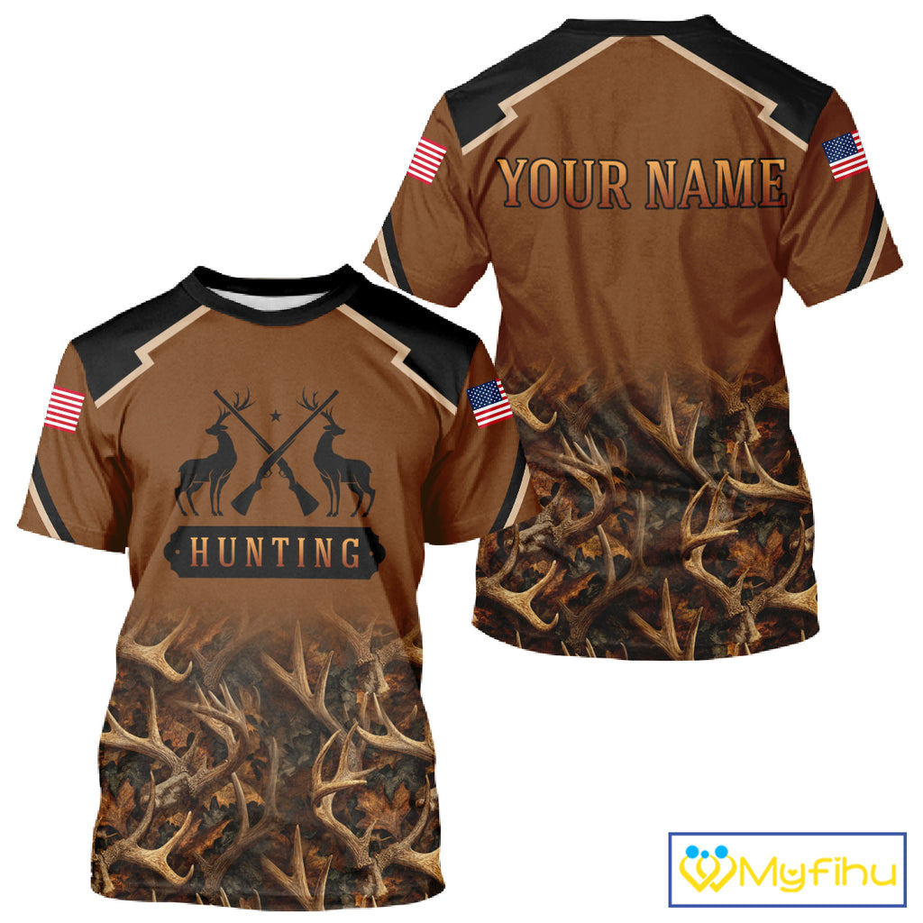 Brown Camo Deer Hunting Shirts with American Flag for Men, Hunting Gift Ideas for Hunters NBT223