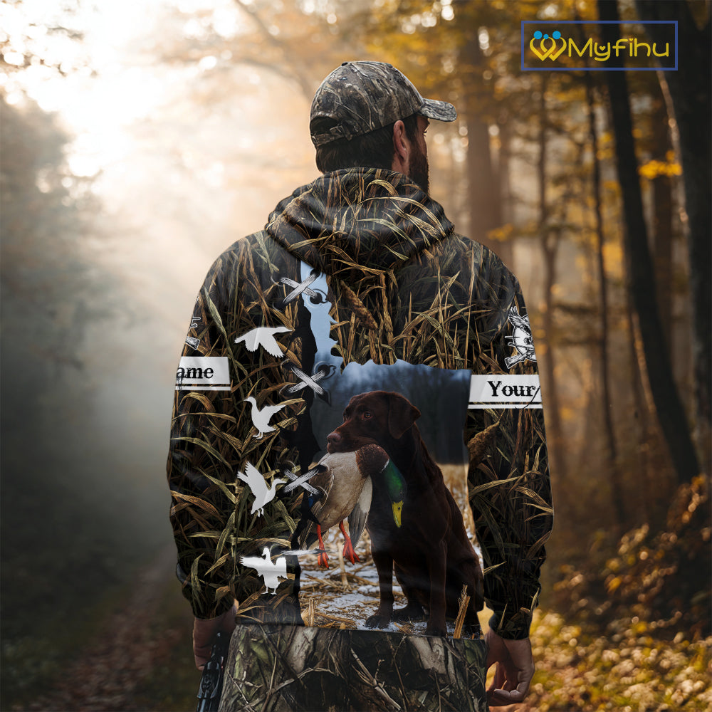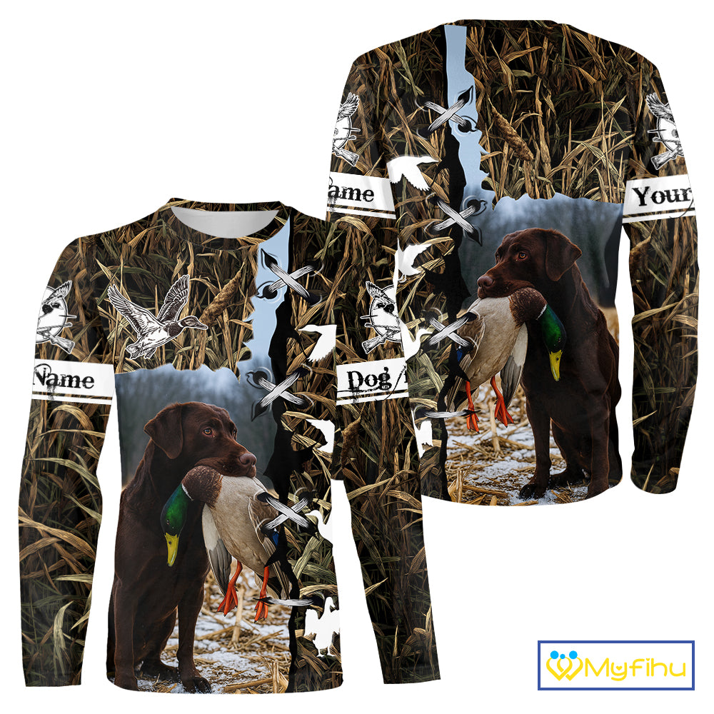 Brown Camo Duck Hunting With Chocolate Lab Dog 3D All Over Printed Shirts, Dog Hunting Clothes NHT143