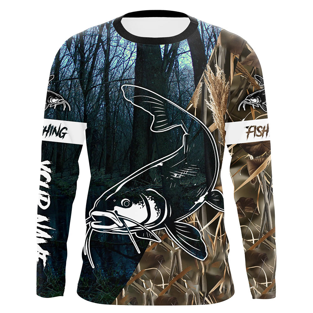Catfish Fishing Camo Customize Name Long Sleeve Fishing Shirts Personalized Fishing Gifts NQS396
