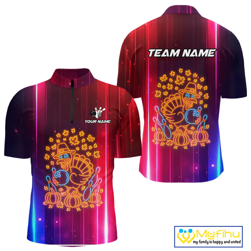 Colorful Neon Autumn Turkey Bowling Shirts for Men Custom Thanksgiving Bowling Team Jerseys NQS10417