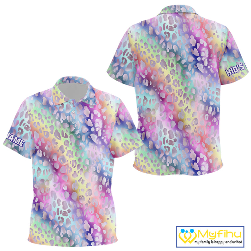 Colorful Neon Rainbow leopard pattern Kid Golf Polo Shirt Custom Kid golf outfit, cool golf gift NQS10244