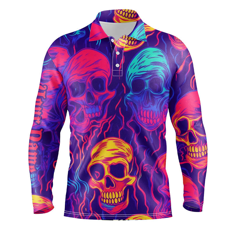 Colorful neon skull pattern Mens golf polo shirt custom men's golf shirts, best golf gifts for men NQS6520