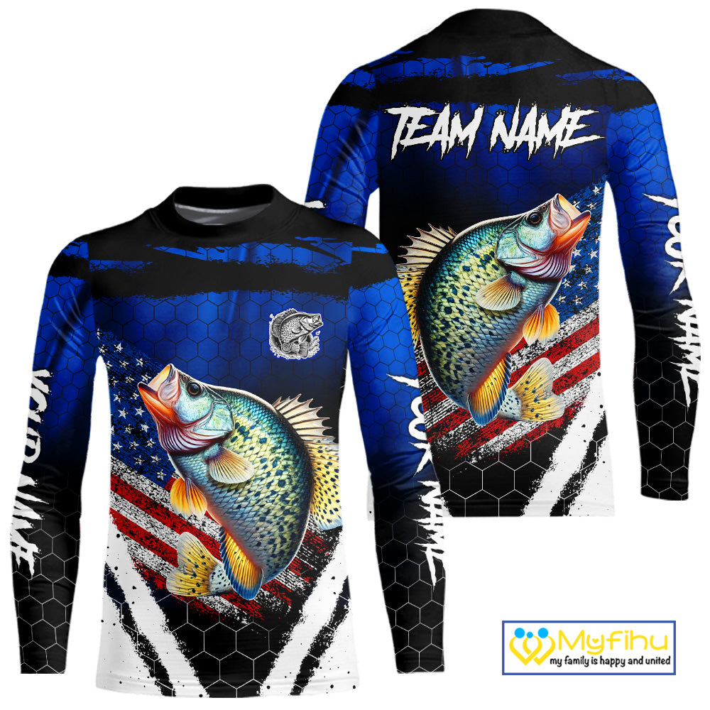 Crappie fishing American Flag Custom patriotic long sleeve team Crappie fishing shirts | Blue NQS10685