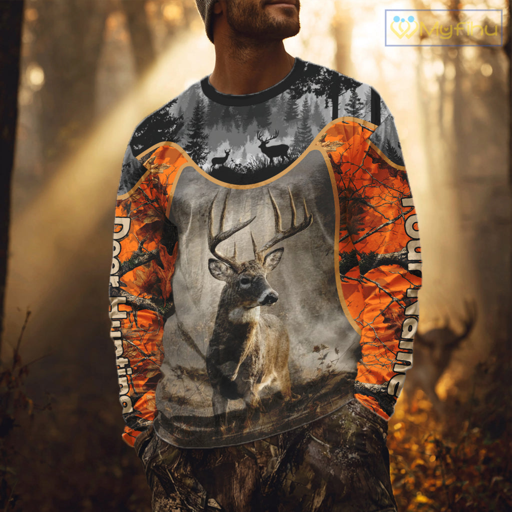 Inspired by the thrill of the hunt and the beauty of the outdoors, this shirt combines durability, comfort, and a unique hunting vibe. Customize it with your name or preferred design elements — from deer graphics to scenic landscapes — to create a one-of-a-kind piece. A perfect gift for passionate deer hunters and outdoor lovers, especially during hunting season.