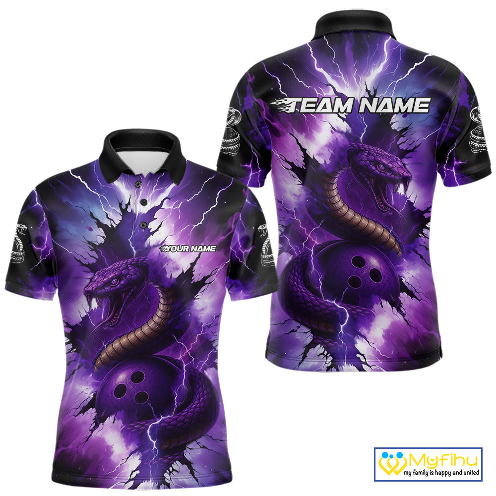 Custom Black And Purple Thunder Lightning Cobra Snake Bowling Men Polo, Quarter Zip Shirts For Team NQS10670