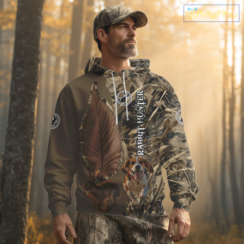 Custom Brown Camo 3D All Over Printed Rabbit Hunting Shirt With Beagle Dog, Hunting Gift NHT224