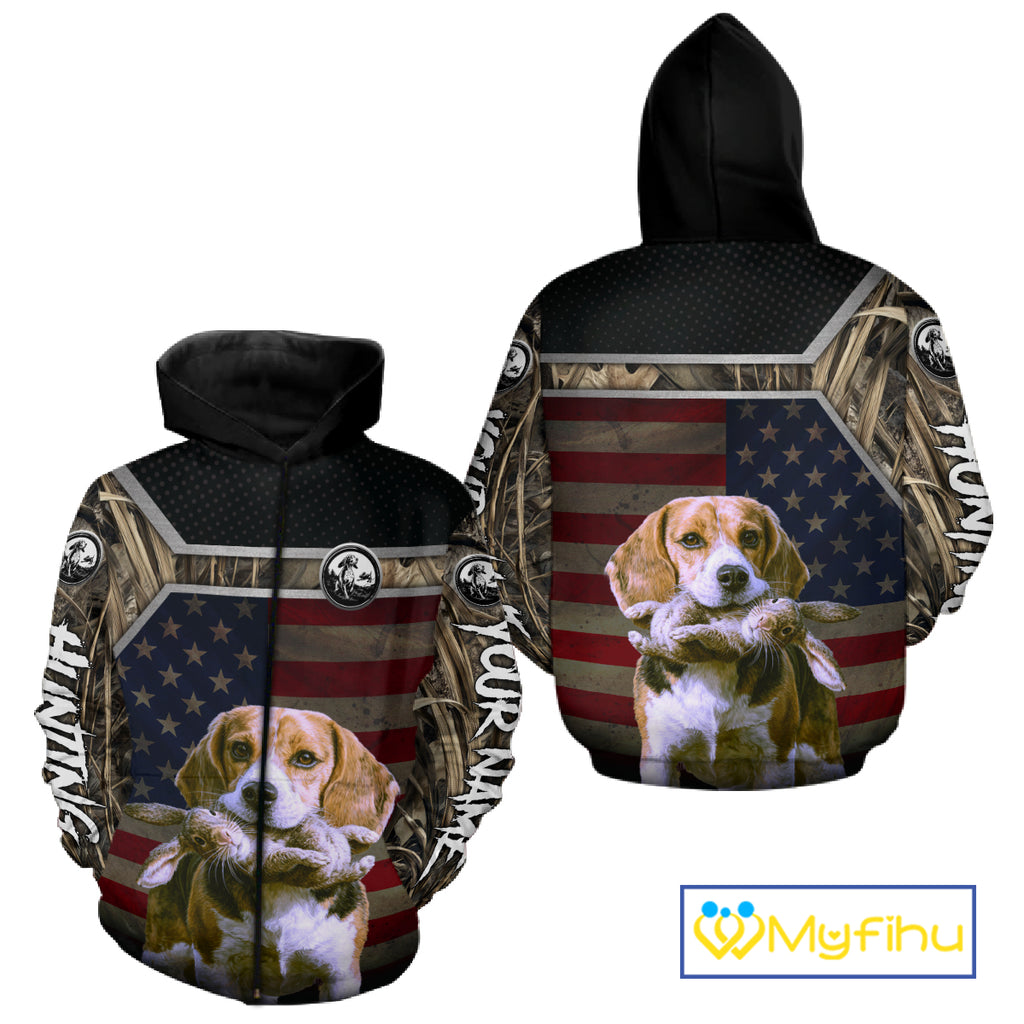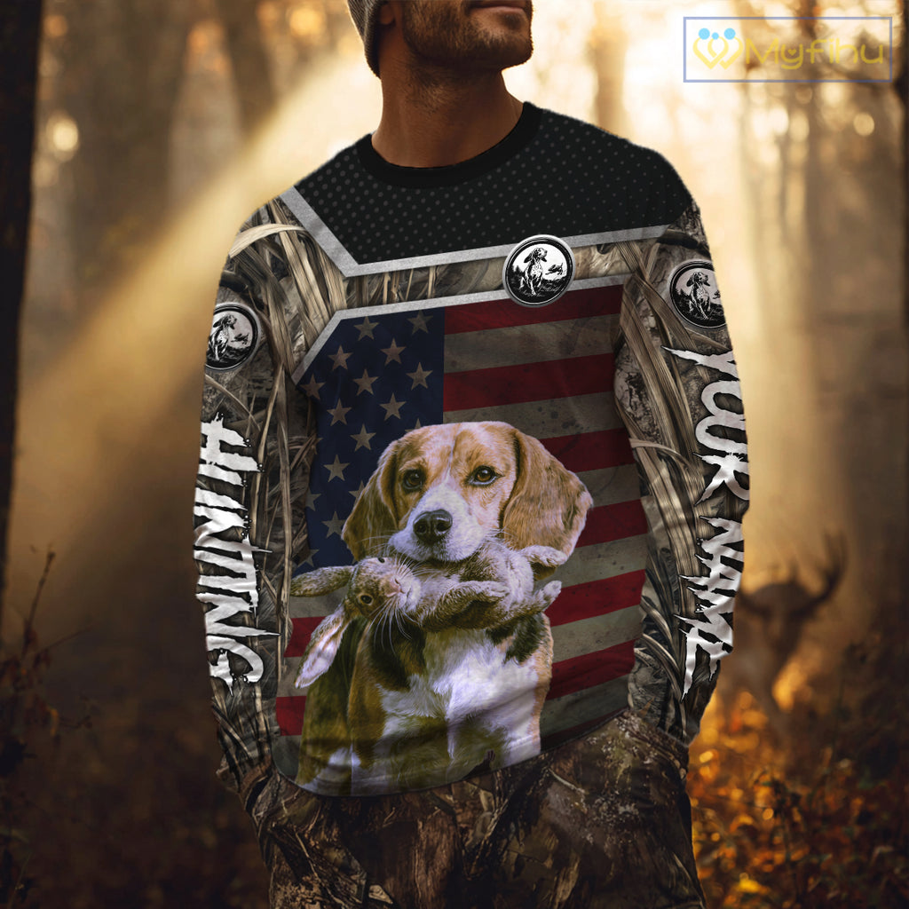 Custom Camouflage Rabbit Hunting Beagle Dog US Flag for Men, Rabbit Hunting Gifts NBT244