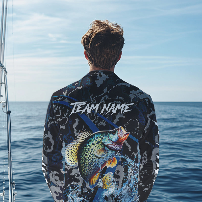 Custom Crappie Fishing Camo Long Sleeve Fishing Shirts, Personalized Crappie Fishing Team Jerseys NQS9678