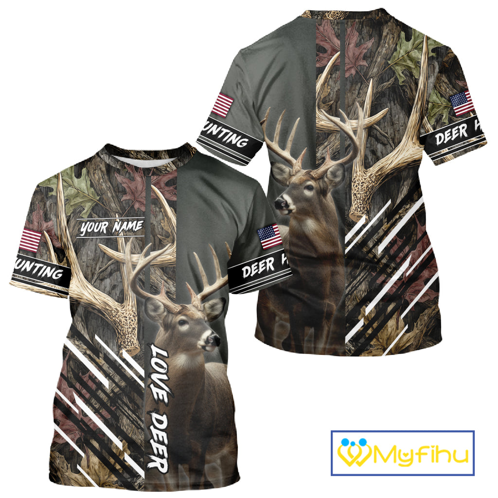 Inspired by the thrill of the hunt and the beauty of the outdoors, this shirt combines durability, comfort, and a unique hunting vibe. Customize it with your name or preferred design elements — from deer graphics to scenic landscapes — to create a one-of-a-kind piece. A perfect gift for passionate deer hunters and outdoor lovers, especially during hunting season.
