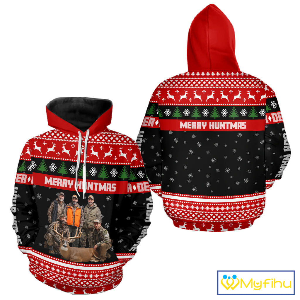 Custom Merry Huntmas Shirt – Personalized Deer Hunting Christmas Shirt with Your Photo NHT308