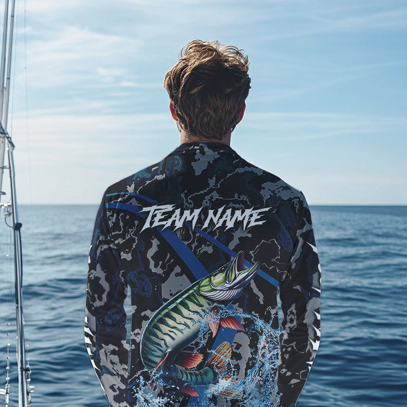 Custom Musky Fishing Camo Long Sleeve Fishing Shirts, Personalized Muskie Fishing Team Jerseys NQS9702