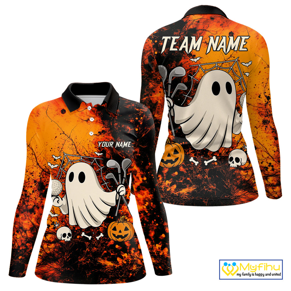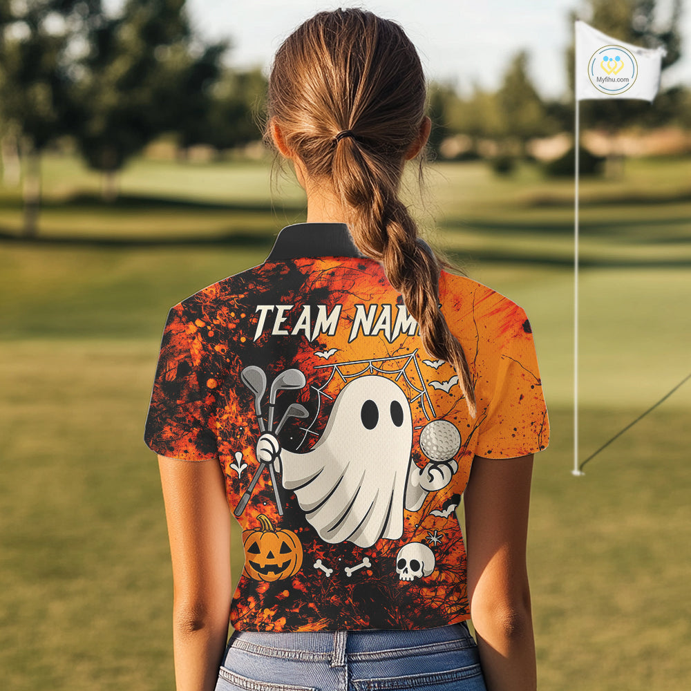 Custom Orange Halloween Boo Golf Polo Shirts for Women, Halloween Ladies Golf Outfits NQS10524