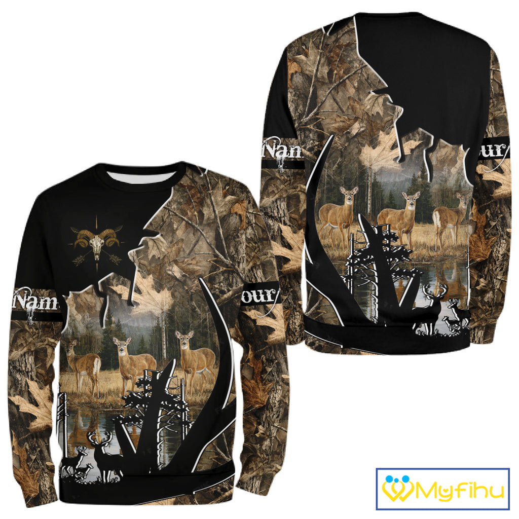Custom Whitetail Deer 3D All Over Print Shirts, Gift for Men, Hunting Hoodie Long Sleeves NBT336