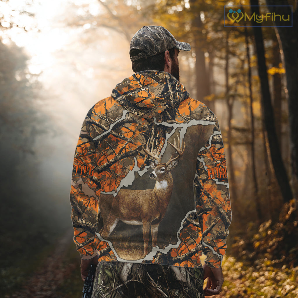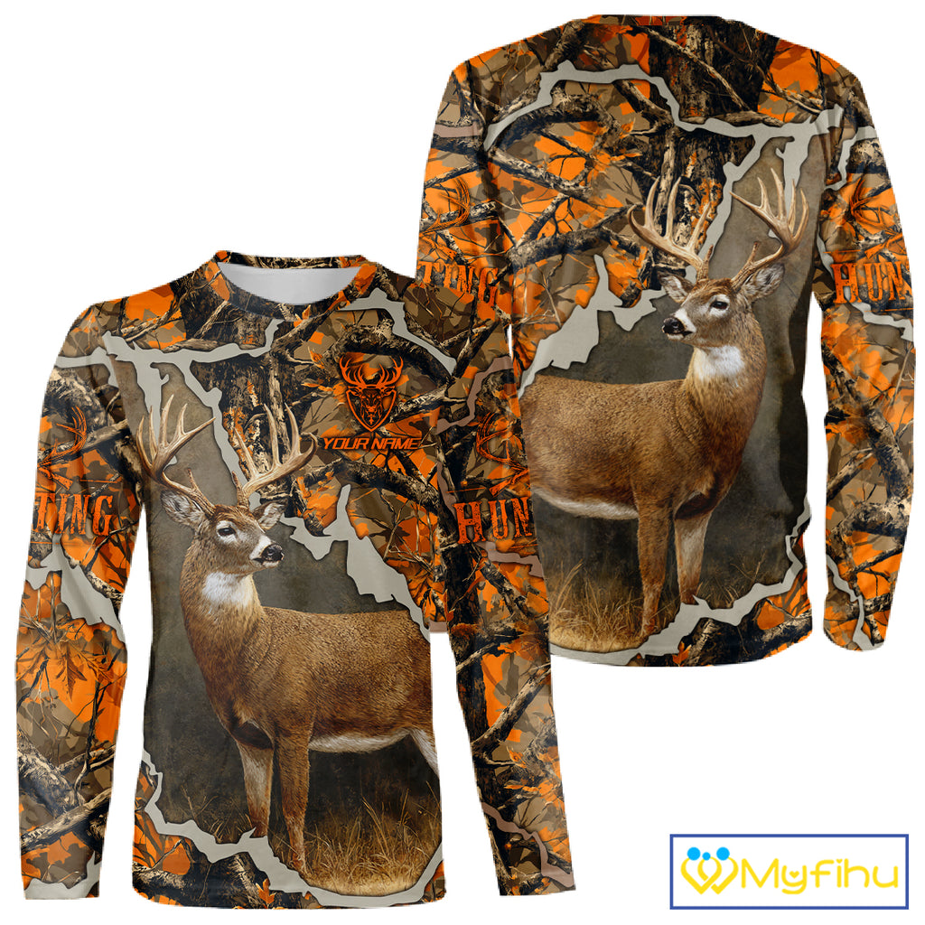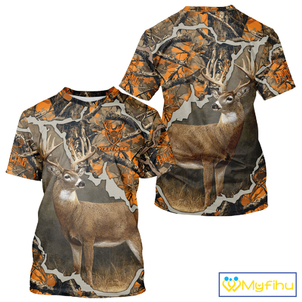 Whitetail Deer Hunting Custom Name Orange Camo Shirt, Deer Hunting Apparel, Camouflage Deer Shirts NBT339