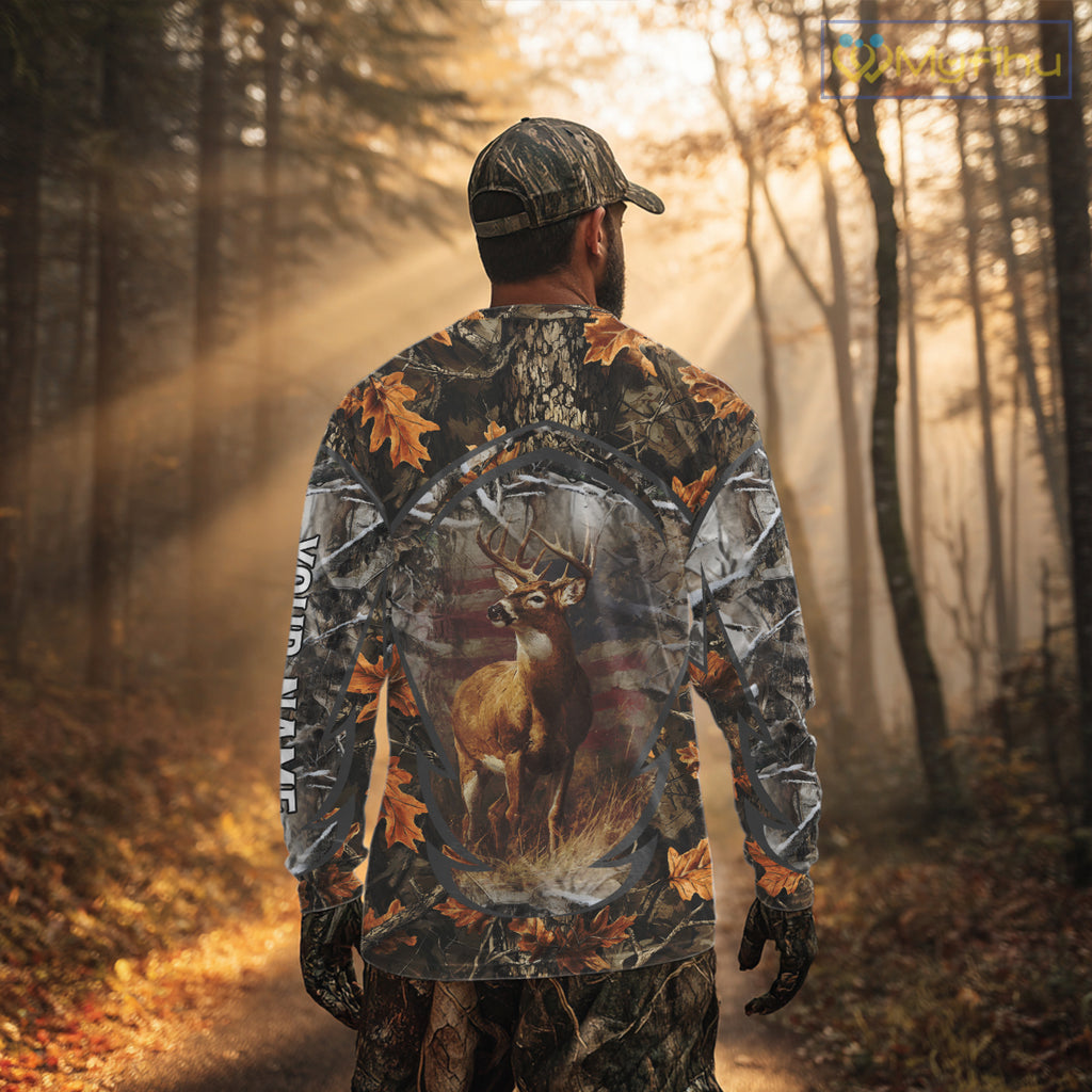 Deer Hunting Camo Hoodie American Flag Long Sleeve 3D Shirt Men Camo Hoodie NBT293
