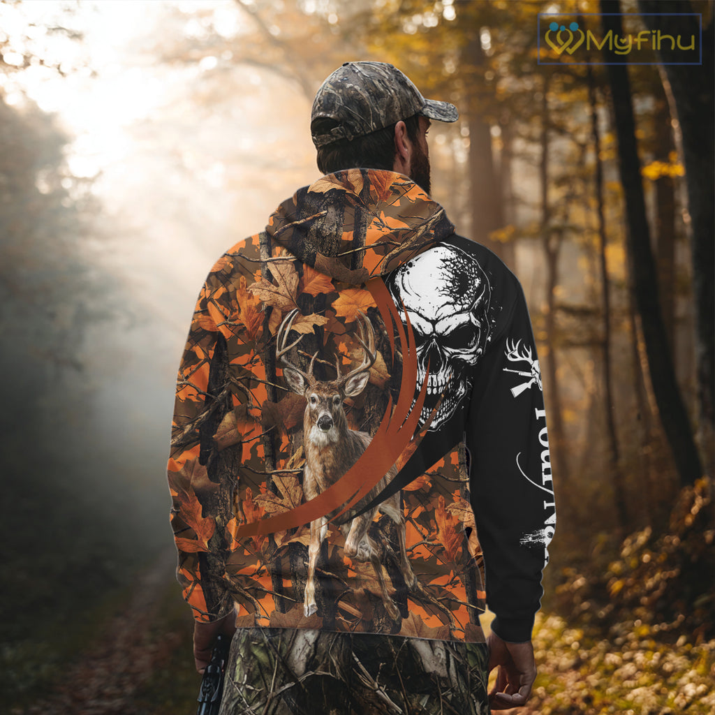 Deer Hunting Orange Camouflage Skull 3D Custom Name Shirts, Camouflage Deer Hunting Gifts NBT238