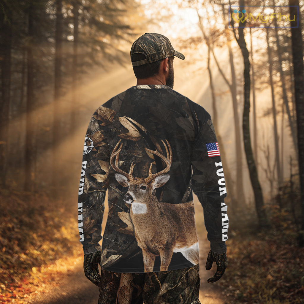 Inspired by the thrill of the hunt and the beauty of the outdoors, this shirt combines durability, comfort, and a unique hunting vibe. Customize it with your name or preferred design elements — from deer graphics to scenic landscapes — to create a one-of-a-kind piece. A perfect gift for passionate deer hunters and outdoor lovers, especially during hunting season.