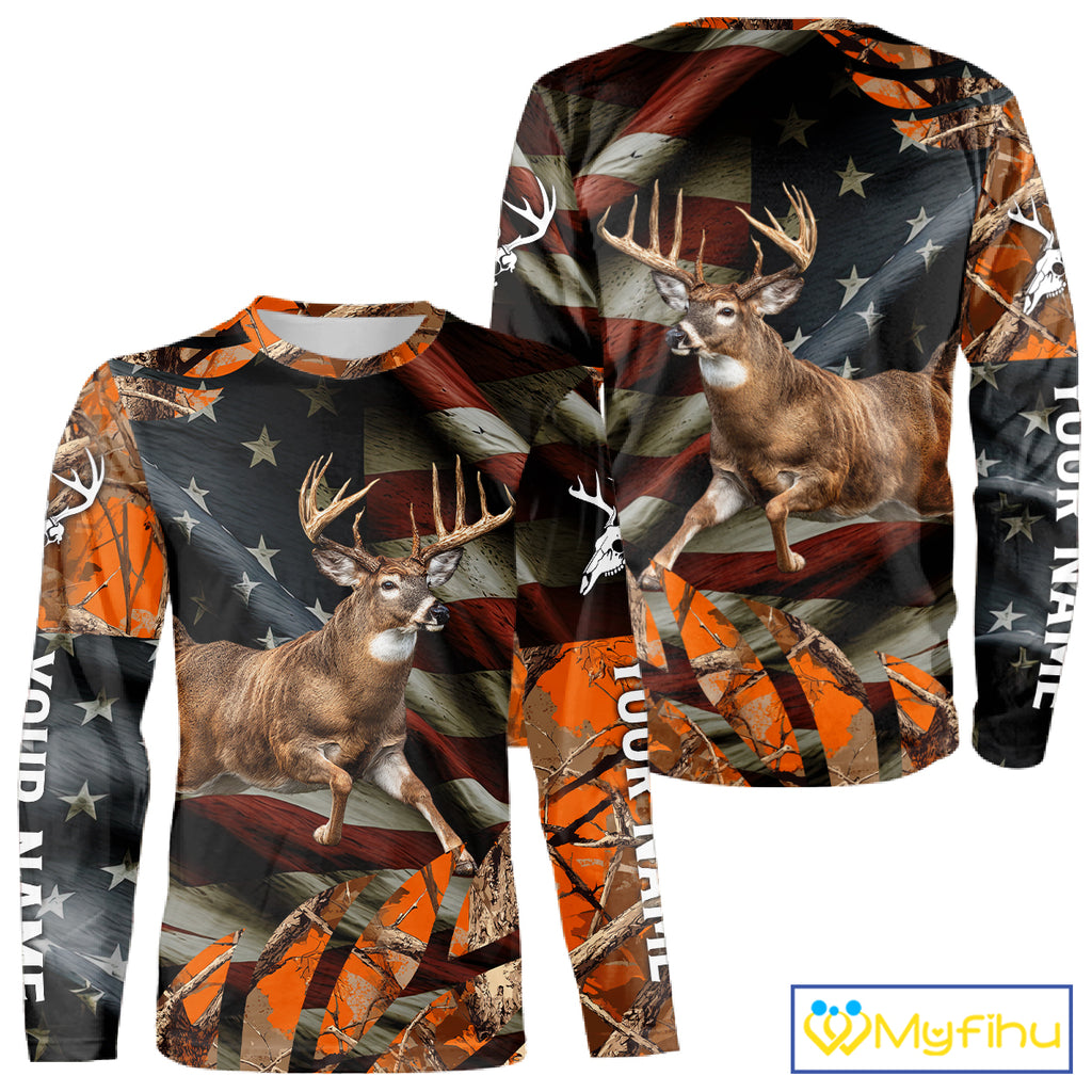 Deer Hunting US Flag 3D All Over Print Shirts, Personalized Hunting Gifts For Deer Hunters NHT316