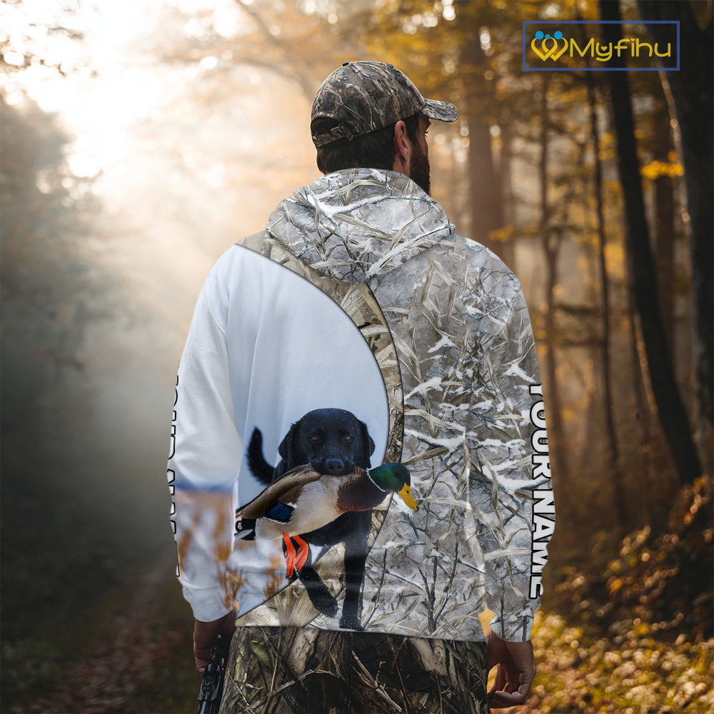 Duck Hunting Winter Camo Black Lab 3D All-Over Printed Shirt, Gift for Waterfowl Hunters NHT250