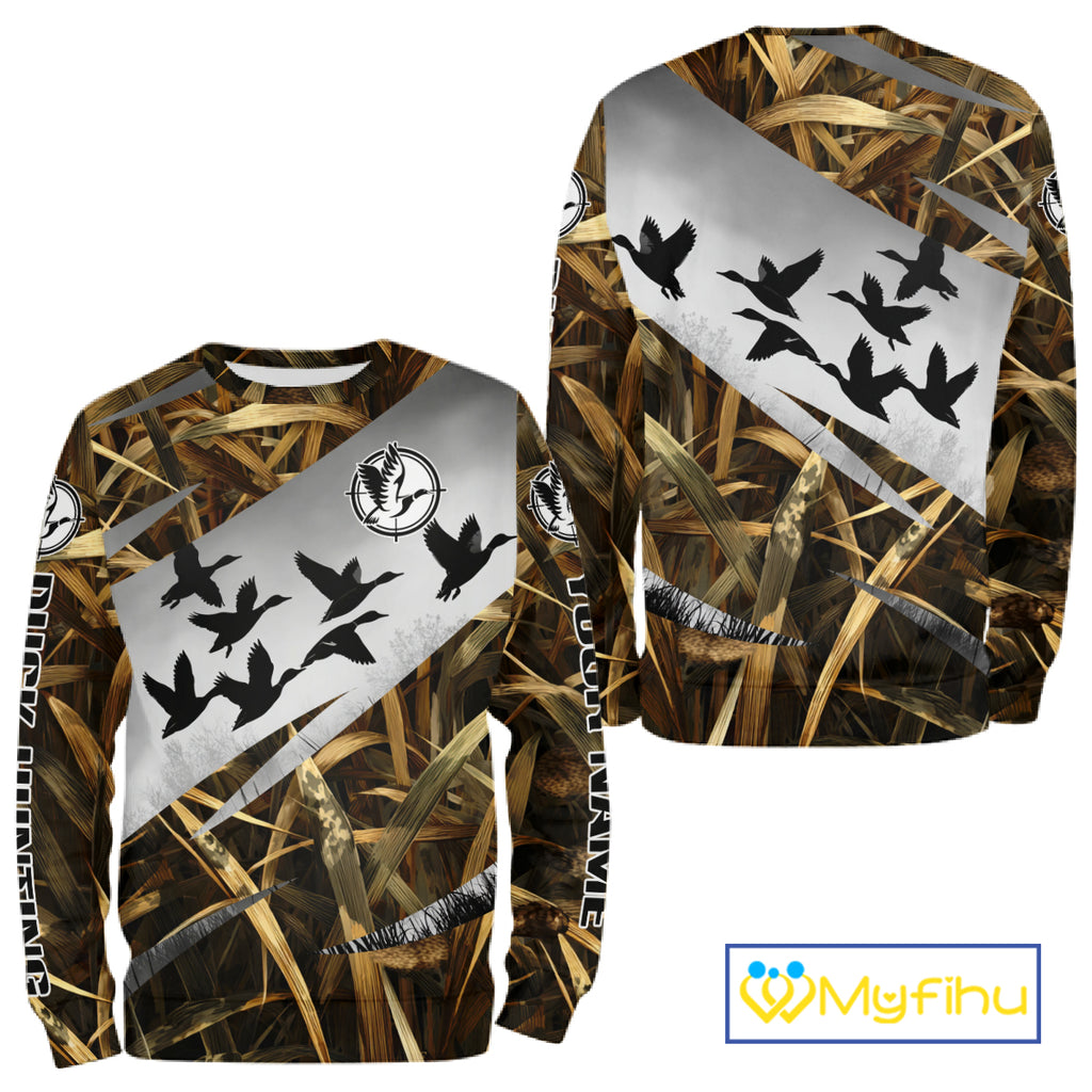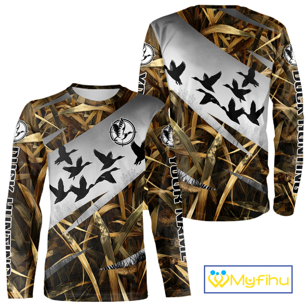 Duck Hunting Mallard Duck Waterfowl Custom Name 3D All Over Print Shirt, Hunting Gifts for Men NBT295