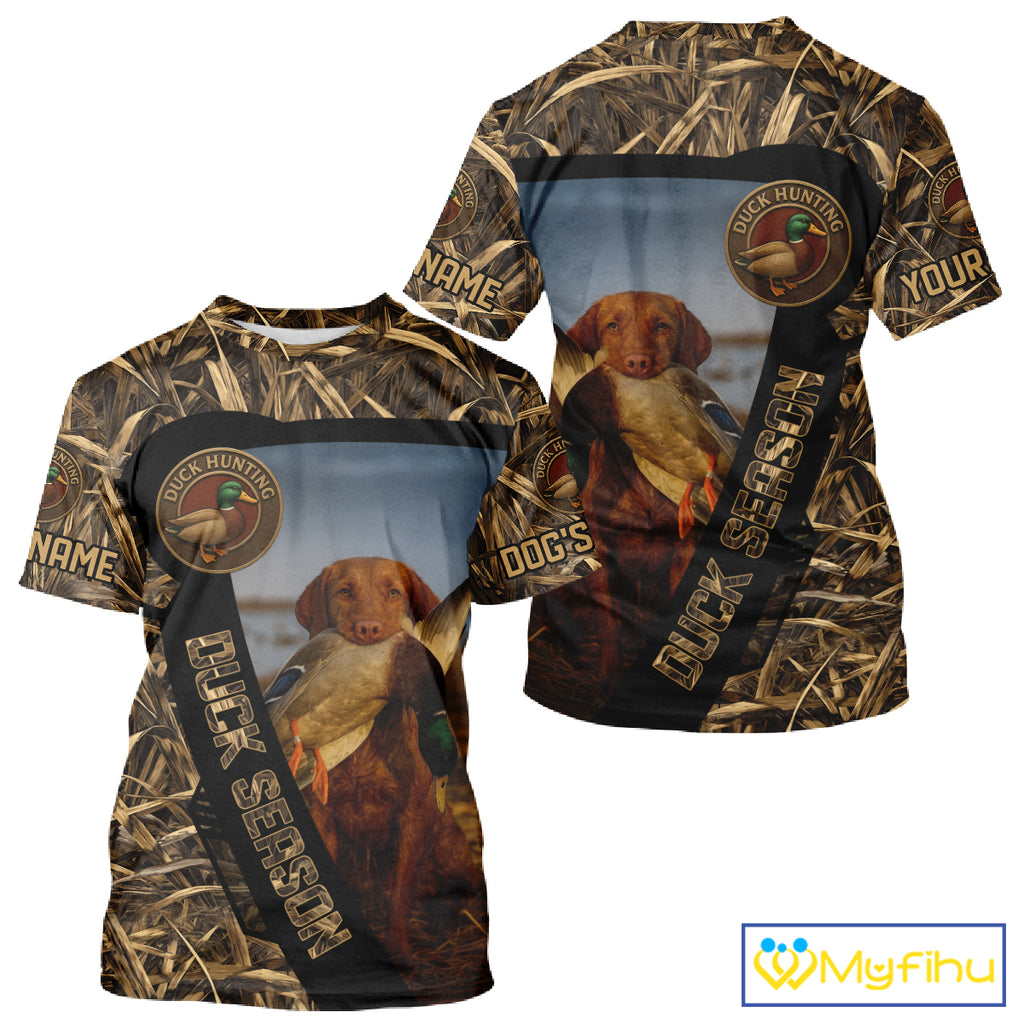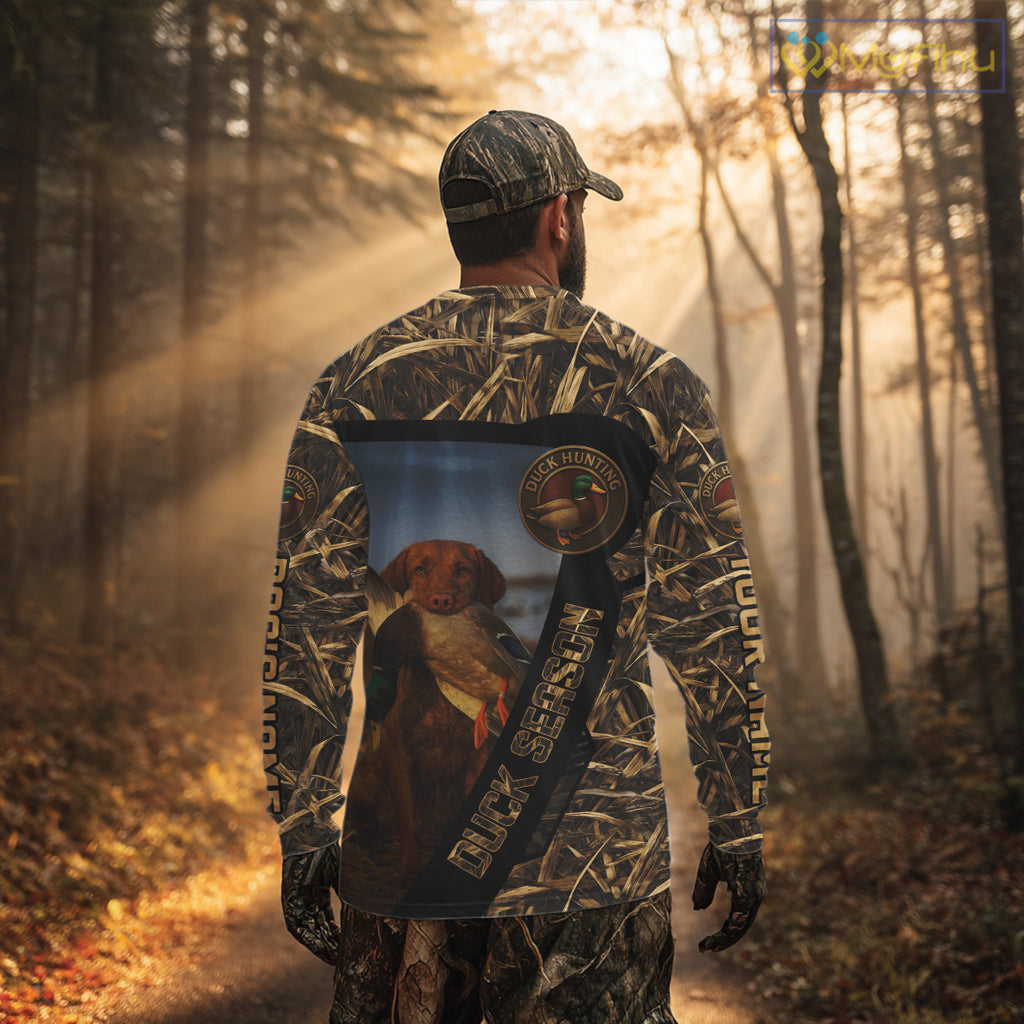 Duck Hunting Shirt Custom Name with Vizsla Dog Camo Hunting Clothes For Duck Hunters NHT153