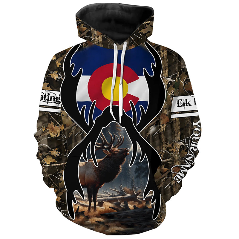 Elk hunting Colorado flag custom Name camo all over print Shirts, Personalized gifts for hunter FSD1556