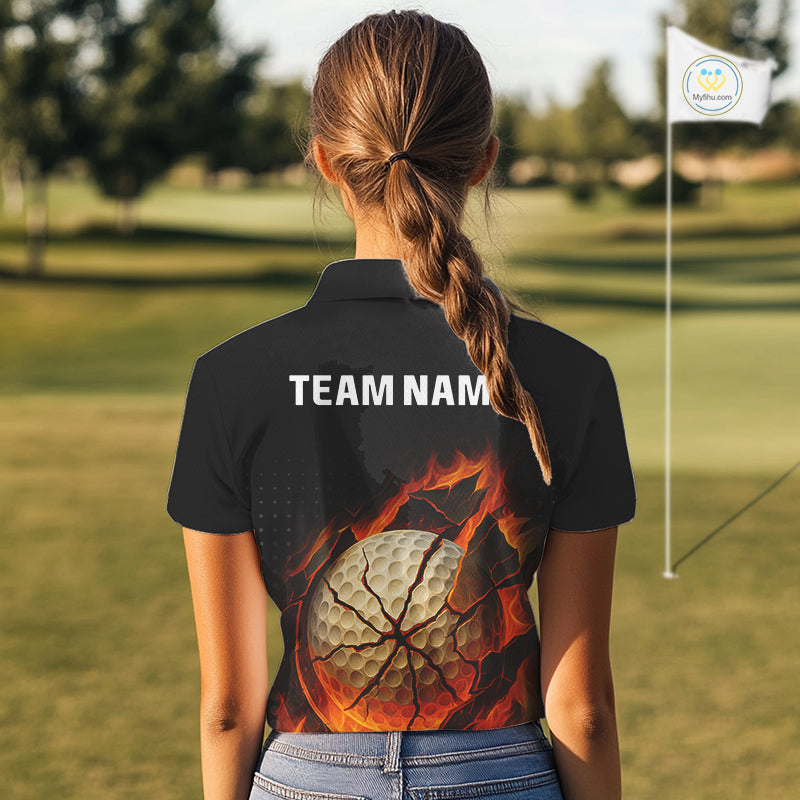 Flame Broken Golf Ball Custom Women golf polo shirt, personalized cool golf outfit for ladies NQS10101