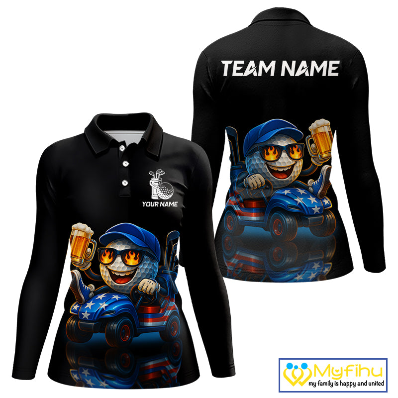 Funny American Flag Golf ball Womens golf polo shirts custom golf and beer golf apparel for ladies NQS10009