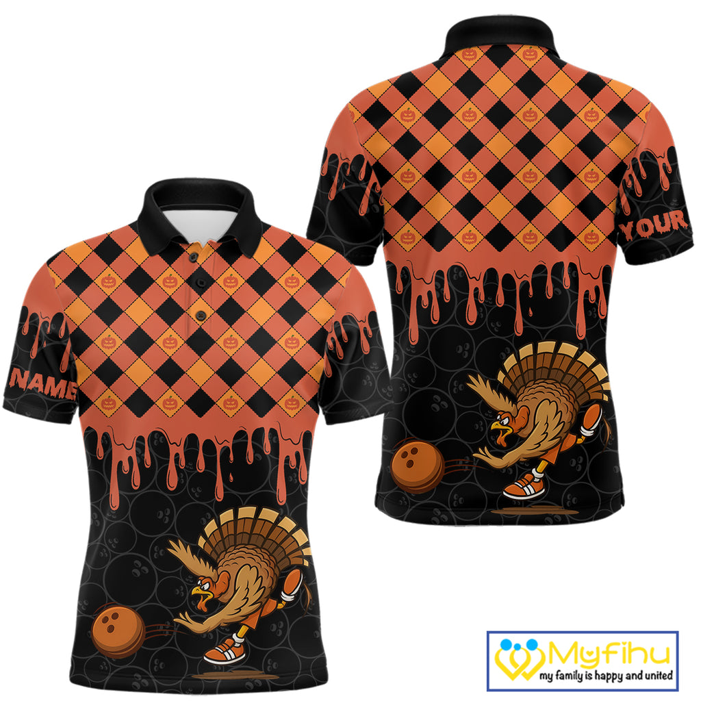 Funny Bowling Turkey Thanksgiving Mens Bowling Shirt Orange Pumpkin Custom Team Bowling Jersey NQS10840