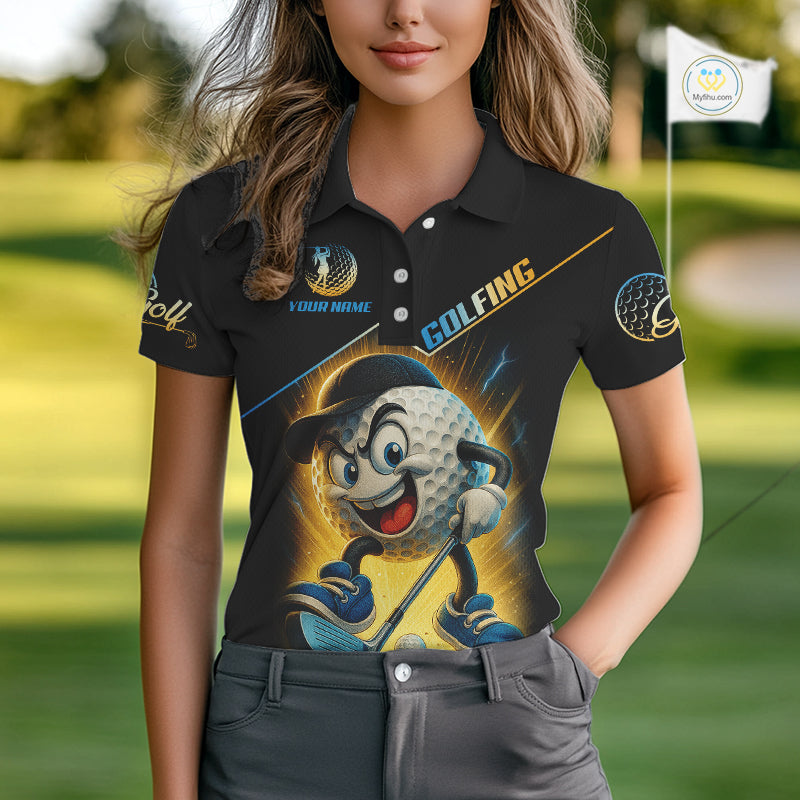 Funny Golf Ball Women golf polo shirts custom name black golf shirt, best team golf shirts NQS10292