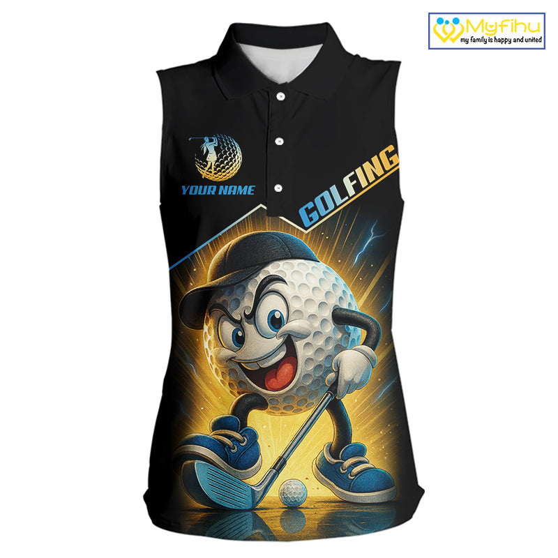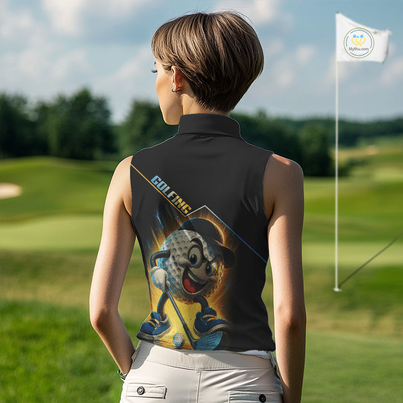 Funny Golf Ball Women Sleeveless Polo Shirt custom name black golf shirt, best team golf shirts NQS10292
