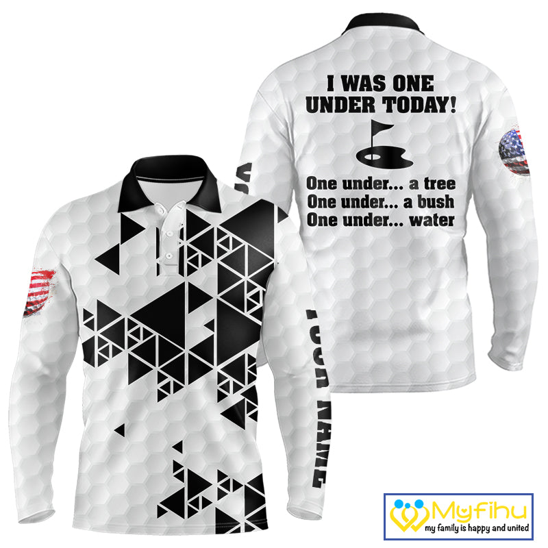 Funny Mens golf polo shirts black and white custom I was one under today, under a tree, bush, water NQS10164