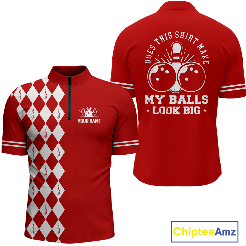 Funny red and white argyle retro Bowling Shirt for men Custom Does this shirt make my balls look big NQS10611