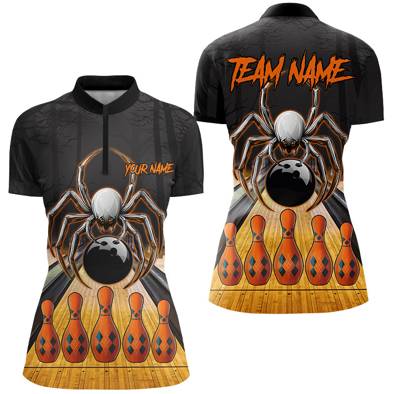 Funny Spider Halloween Bowling Shirts For Women Custom Bowling Team Jerseys, Halloween Bowling Outfits NQS8569