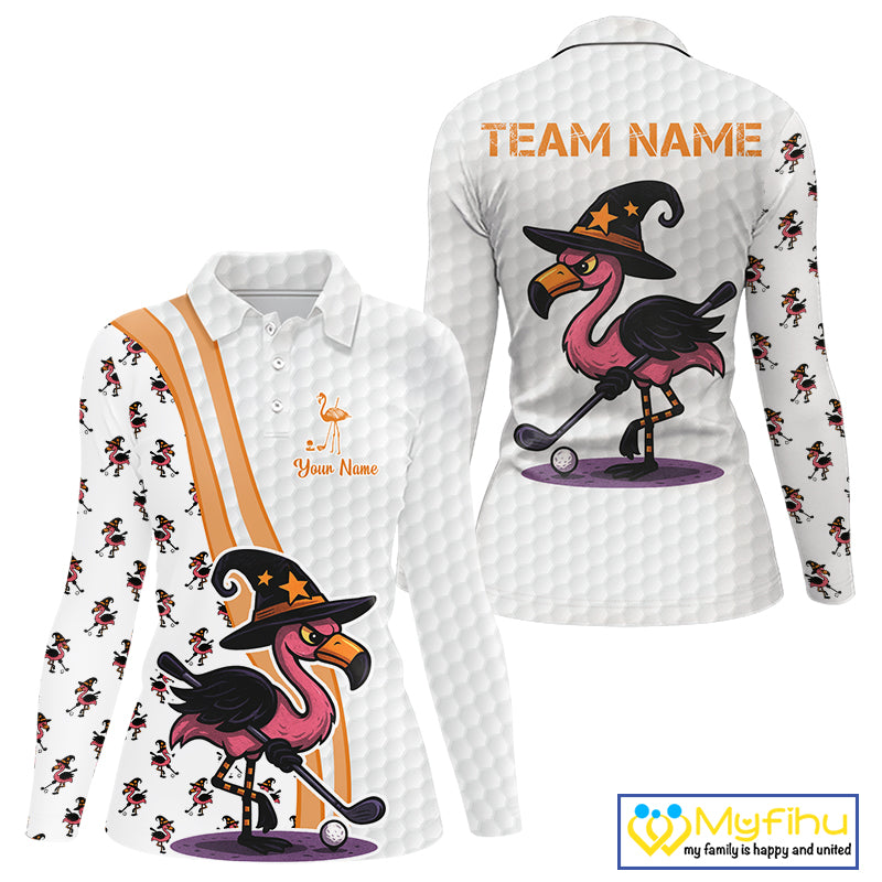 Funny Women golf polo shirt custom Halloween flamingo pattern white golf shirts NQS10377
