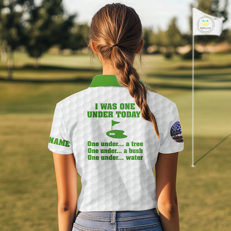 Funny Women golf polo shirts green and white custom I was one under today, under a tree, bush, water NQS10165